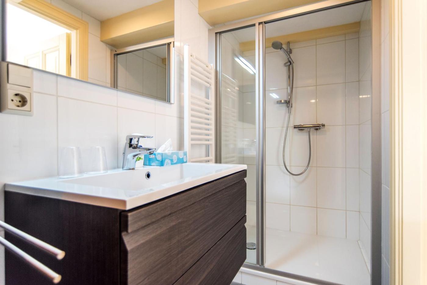 Deluxe Double Room with Shower. Providing free toiletries and bathrobes, this double room includes a private bathroom with a shower and a hairdryer. The well-fitted kitchenette features a refrigerator, kitchenware and an oven. The spacious double room provides a flat-screen TV with cable channels, a private entrance, a tea and coffee maker, a seating area as well as city views. The unit offers 1 bed.