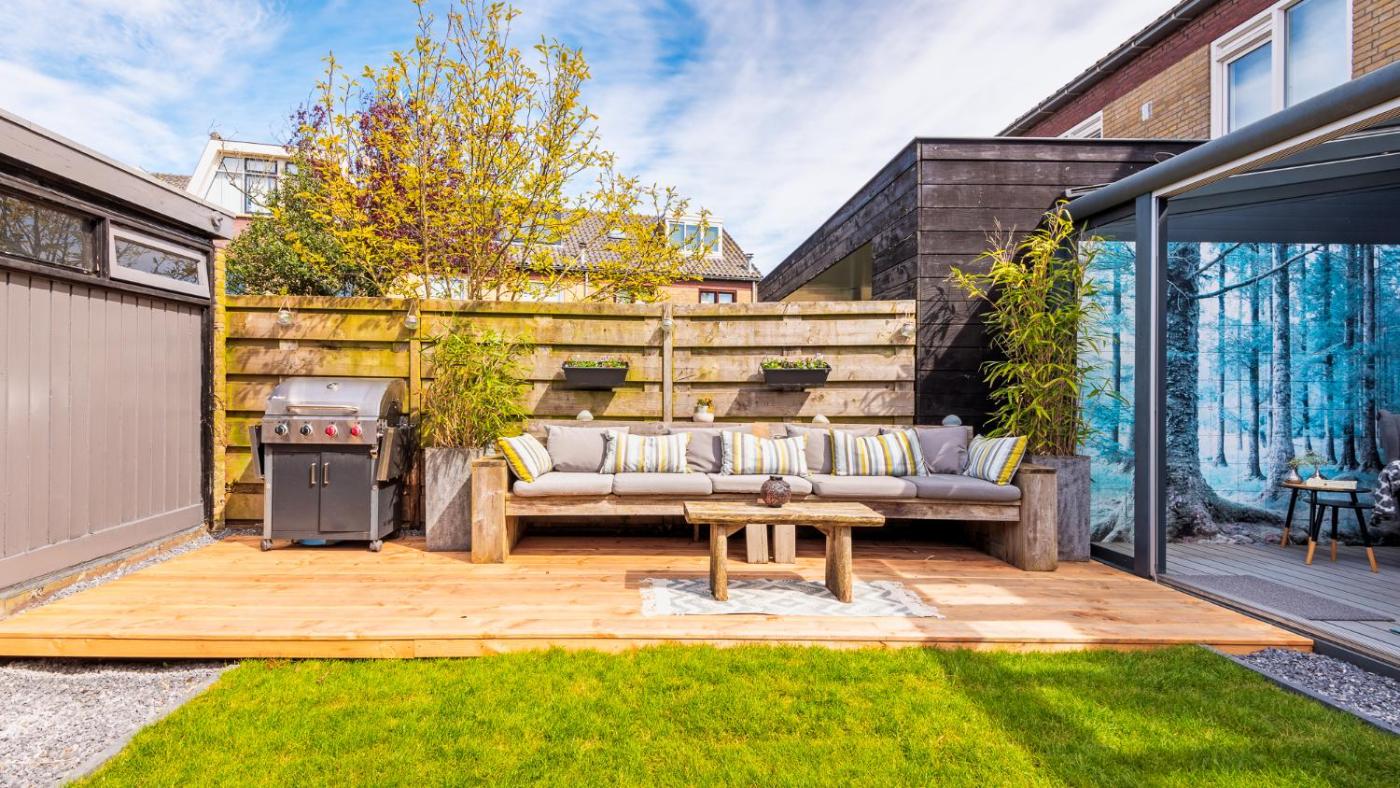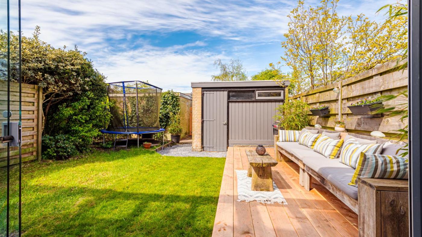 The holiday home with a terrace and garden views has 3 bedrooms, a living room, a flat-screen TV, an equipped kitchen with a dishwasher and an oven, and 1 bathroom with a walk-in shower. Towels and bed linen are available in the holiday home. The property has an outdoor dining area.