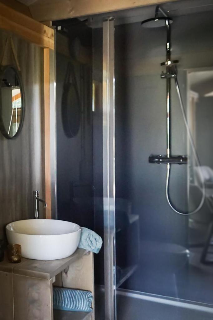 Tent 6 adults. Guests will find a stovetop, a refrigerator, a dishwasher and kitchenware in the well-equipped kitchen. The tent also comes with a barbecue. The tent features a private entrance, a coffee machine, a terrace with garden views as well as a private bathroom boasting a shower. The unit has 4 beds. ;