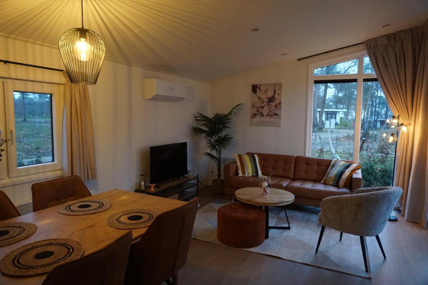 Two-Bedroom Chalet. Featuring a private entrance, this air-conditioned chalet consists of a kitchen, 2 bedrooms and 1 bathroom with a shower and a hairdryer. Guests can make meals in the kitchen that is equipped with a stovetop, a refrigerator, a dishwasher and kitchenware. Boasting a terrace with garden views, this chalet also provides a coffee machine and a flat-screen TV. The unit offers 3 beds.