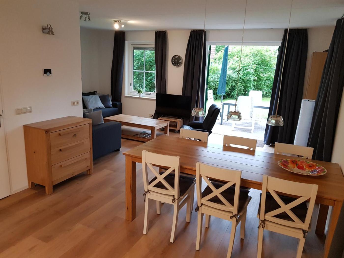 The holiday home has 2 bedrooms, a flat-screen TV with streaming services, a fully equipped kitchen with a dishwasher and an oven, a washing machine, and 1 bathroom with a shower. Guests can enjoy a meal on an outdoor dining area while overlooking the garden views. This holiday home is allergy-free and non-smoking.