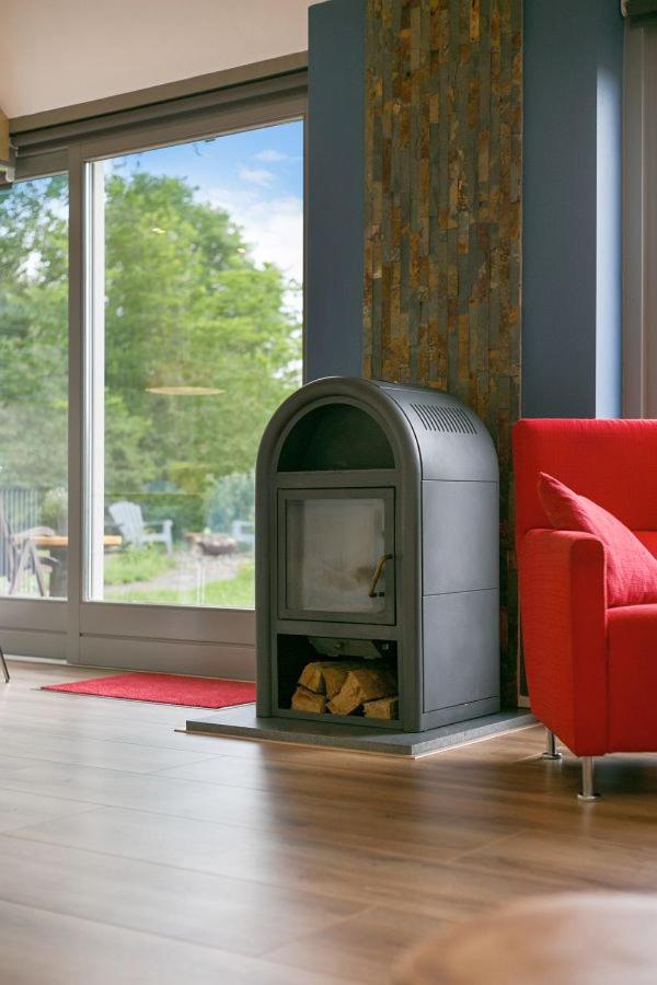 The holiday home with a terrace and garden views has 2 bedrooms, a living room, a flat-screen TV, an equipped kitchen with a dishwasher and an oven, and 1 bathroom with a walk-in shower. Guests can enjoy an ambient stay in their soundproof room with parquet floors and a fireplace. The property has an outdoor dining area.