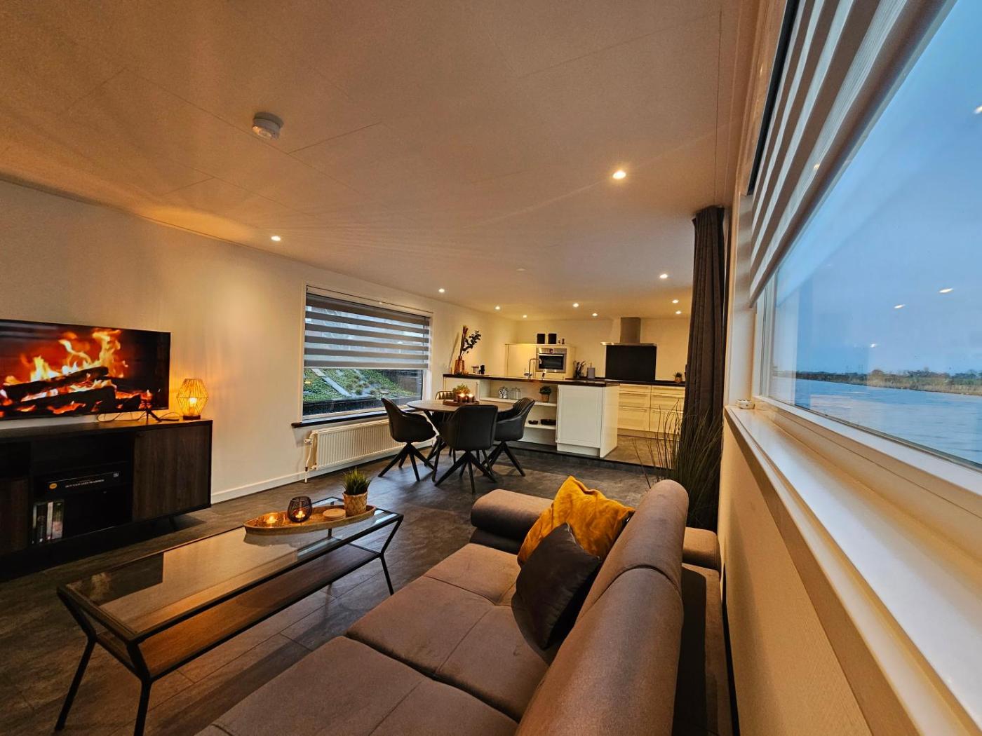Luxe woonboot in de natuur aan doorgaand vaarwater
