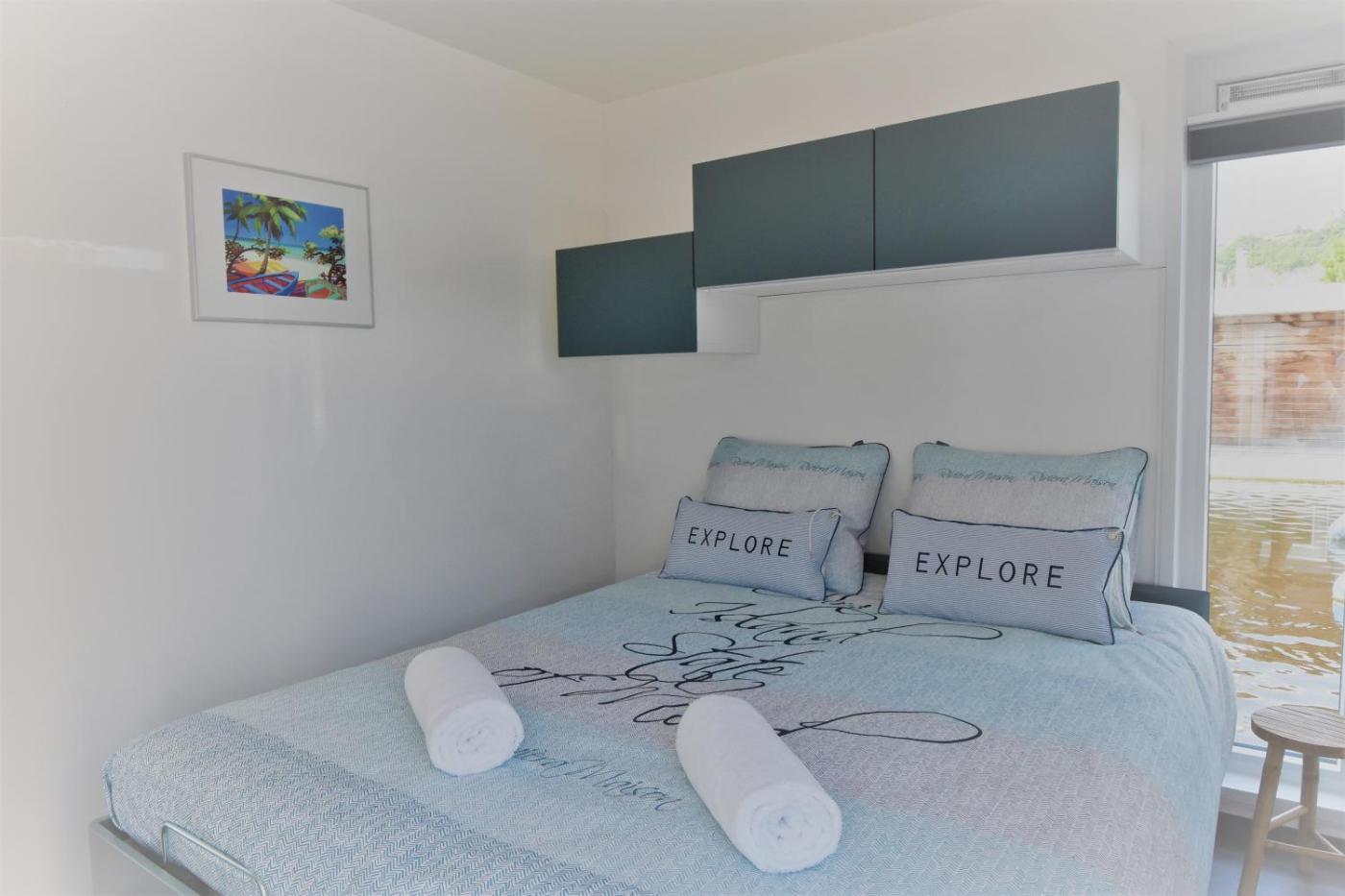Floating Holiday Home. Boasting a private entrance, this holiday home comes with 1 living room, 1 separate bedroom and 1 bathroom with a shower and a hairdryer. Guests can make meals in the kitchen that features a stovetop, a refrigerator, kitchenware and an oven. Featuring a terrace with lake views, this holiday home also features soundproof walls and a flat-screen TV. The unit has 1 bed.