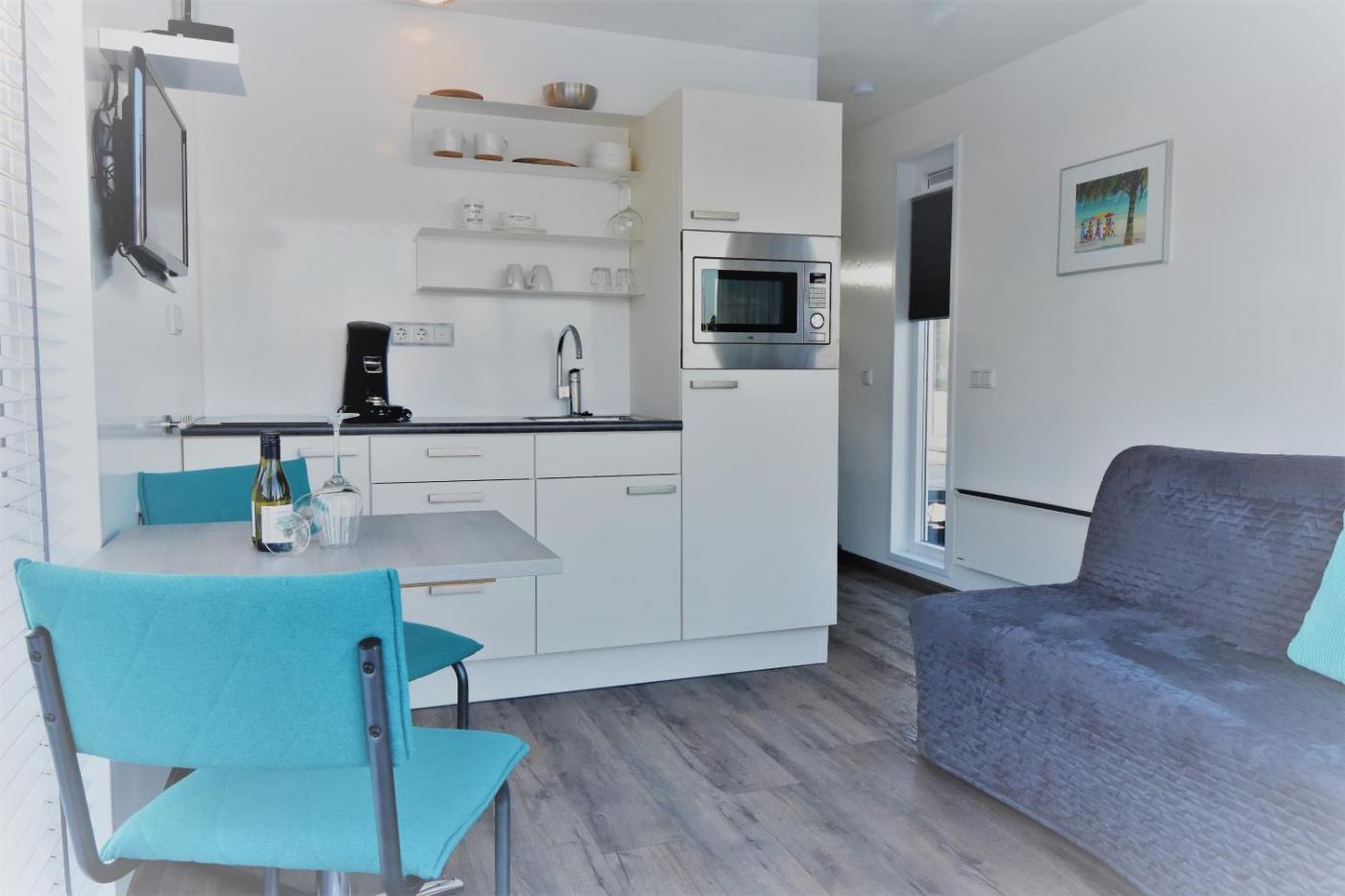 The holiday home with a terrace and lake views has 1 bedroom, a living room, a flat-screen TV, an equipped kitchen with an oven and a microwave, and 1 bathroom with a shower. Towels and bed linen are available in the holiday home. This holiday home is allergy-free and non-smoking.