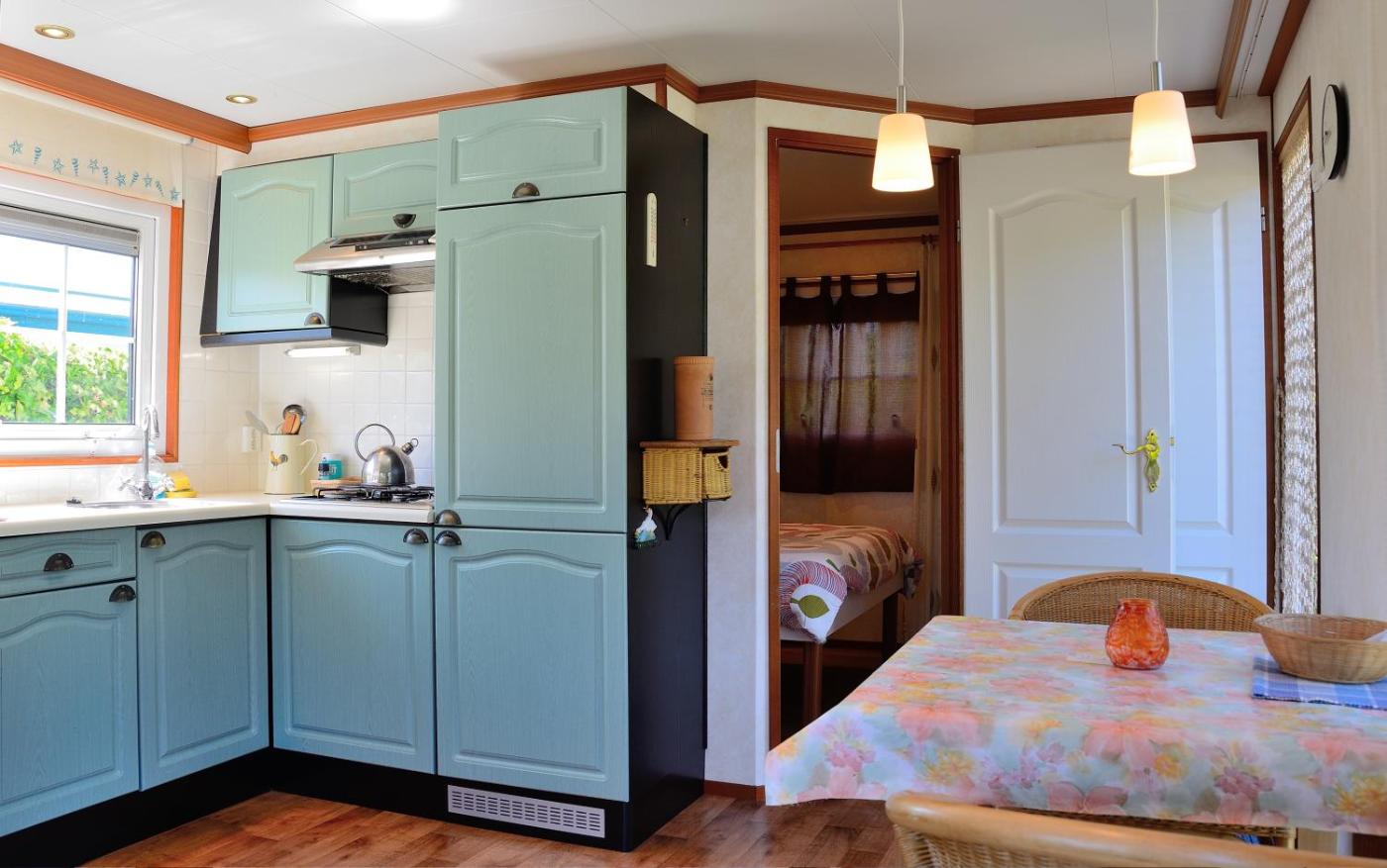 The chalet has a terrace, 1 bedroom, a living room and a well-equipped kitchen with a fridge and kitchenware.