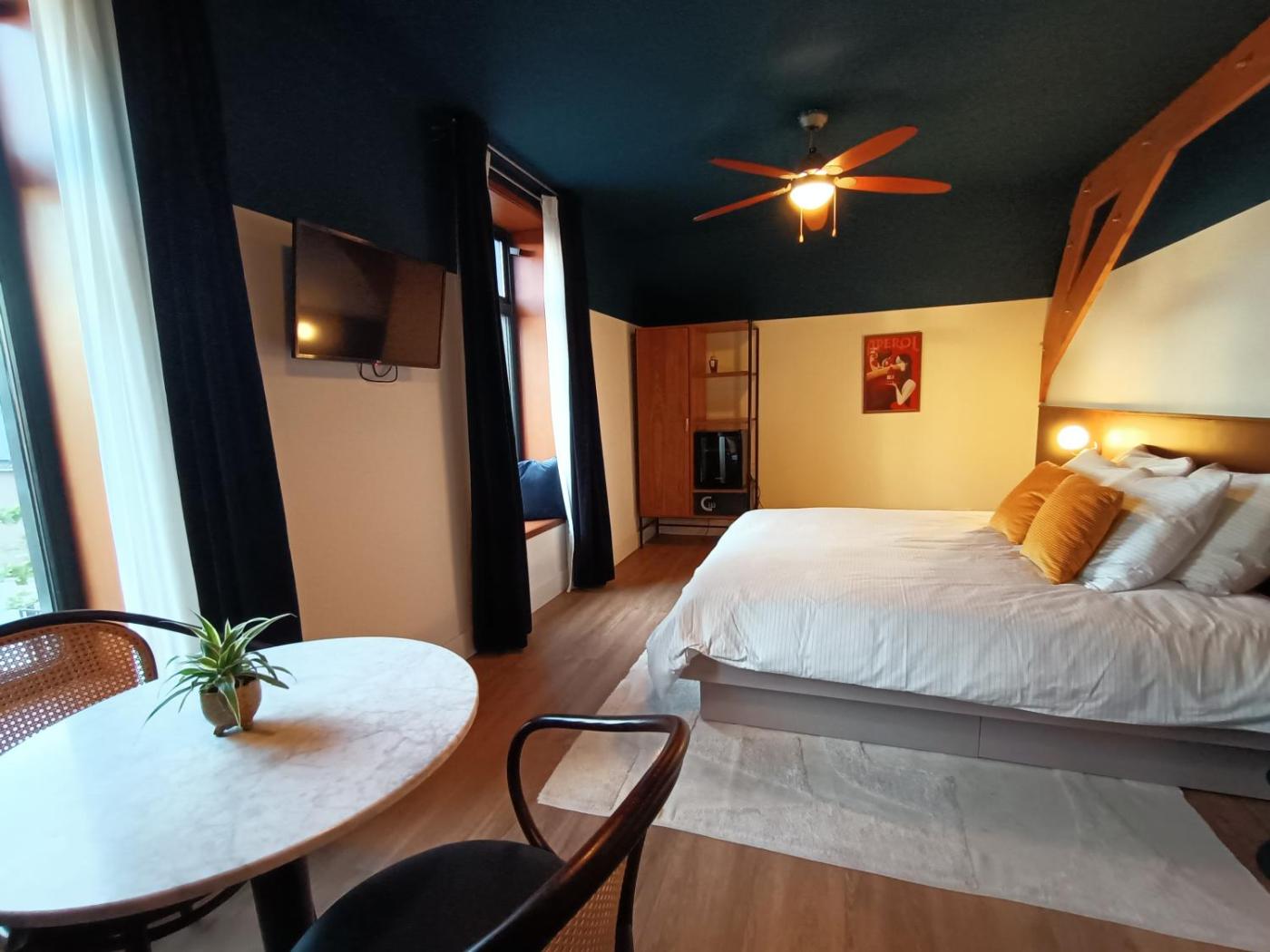 Double Room. The double room has a private bathroom, air conditioning, a minibar, as well as a seating area with a flat-screen TV. The double room features a TV, a tea and coffee maker, a wardrobe, a safe deposit box as well as a quiet street view. The unit has 1 bed. ;