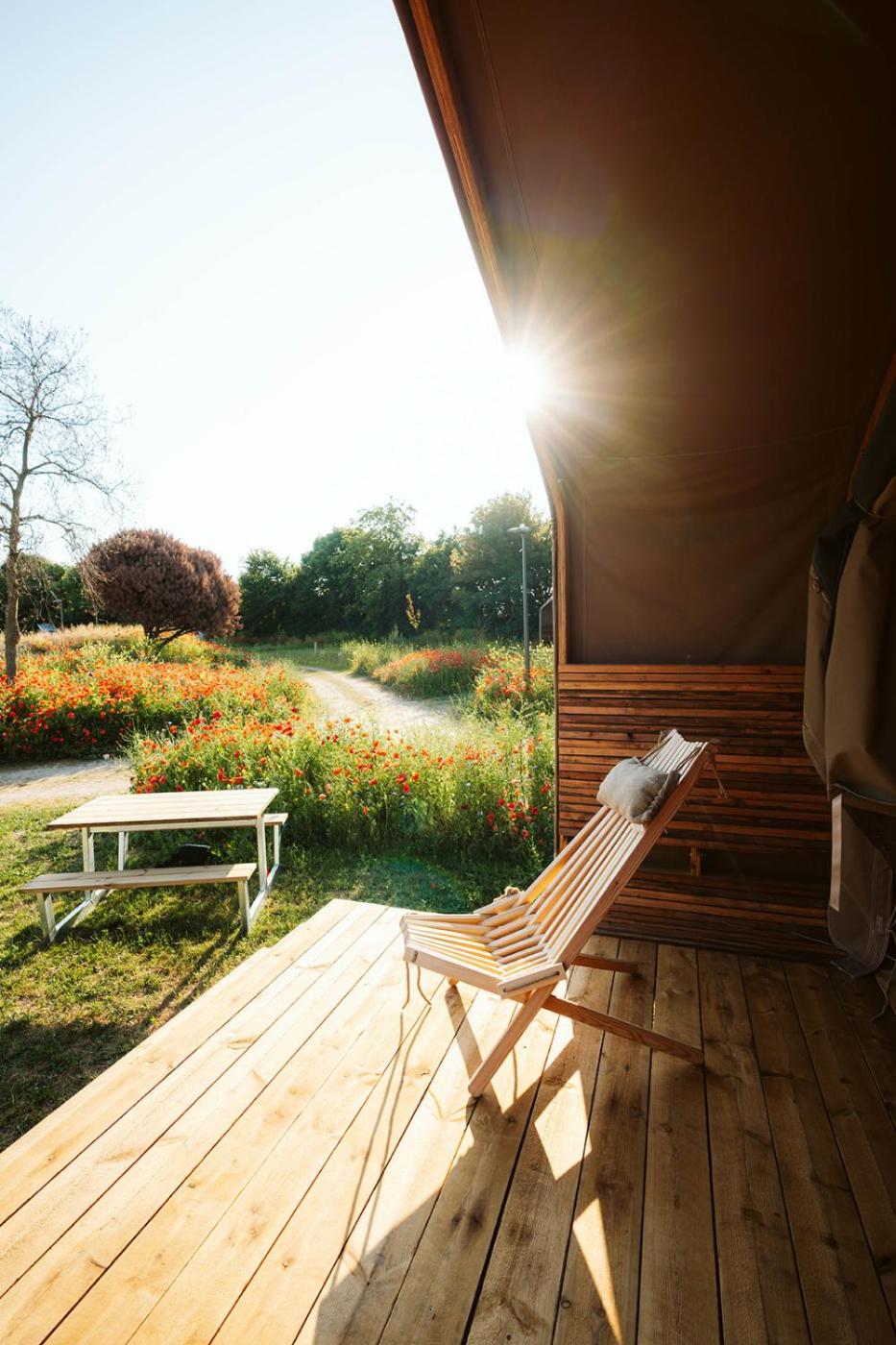 Tent. The kitchenette has a stovetop, a refrigerator and kitchenware. The tent features a private entrance, a tea and coffee maker, a seating area as well as a terrace with garden views. The unit has 2 beds.