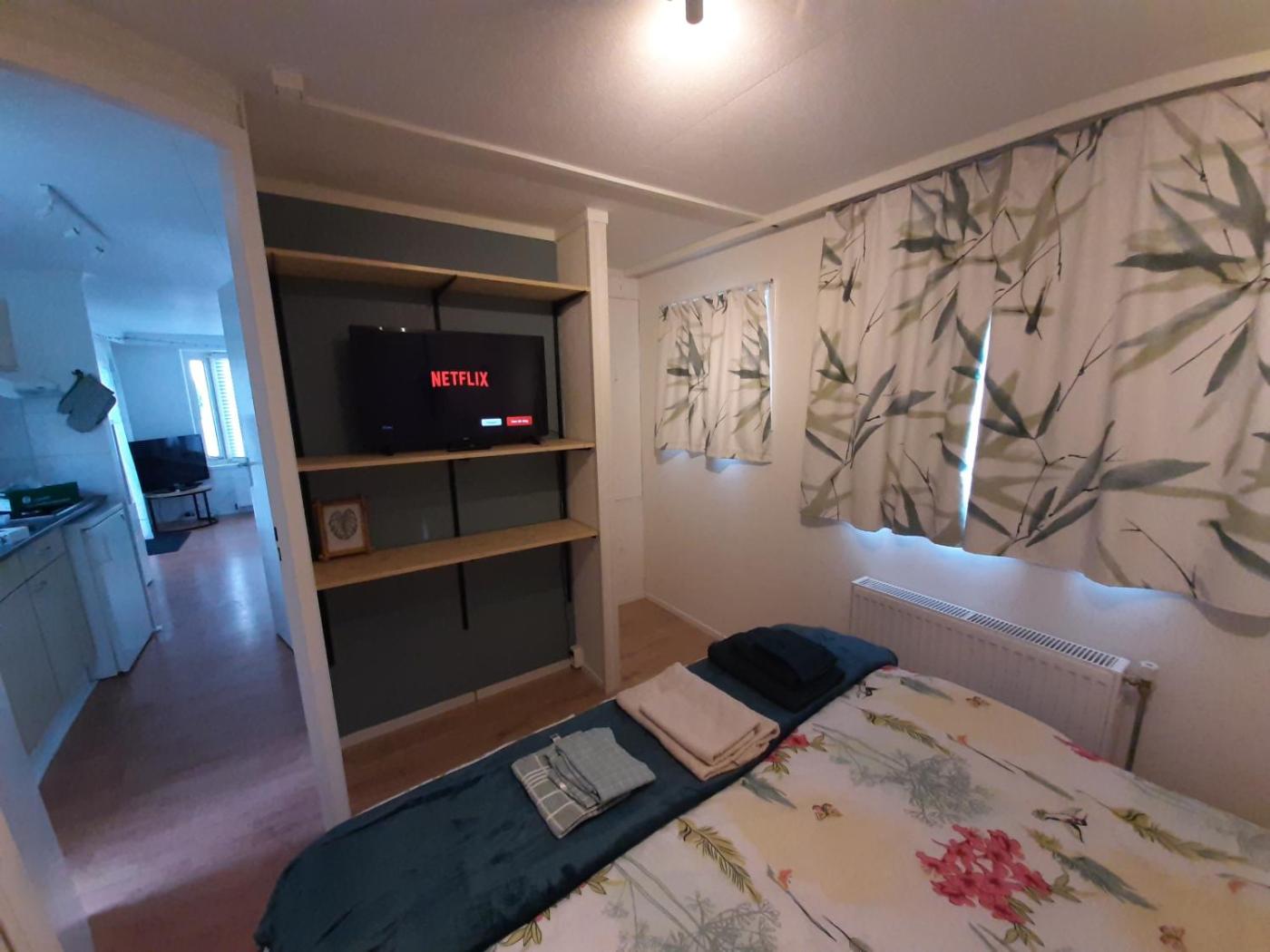 One-Bedroom House. Boasting a private entrance, this holiday home includes 1 living room, 1 separate bedroom and 1 bathroom with a shower. In the kitchen, guests will find a stovetop, a refrigerator, kitchenware and an oven. Featuring a terrace with garden views, this holiday home also offers a tea and coffee maker and a flat-screen TV with streaming services. The unit has 1 bed.