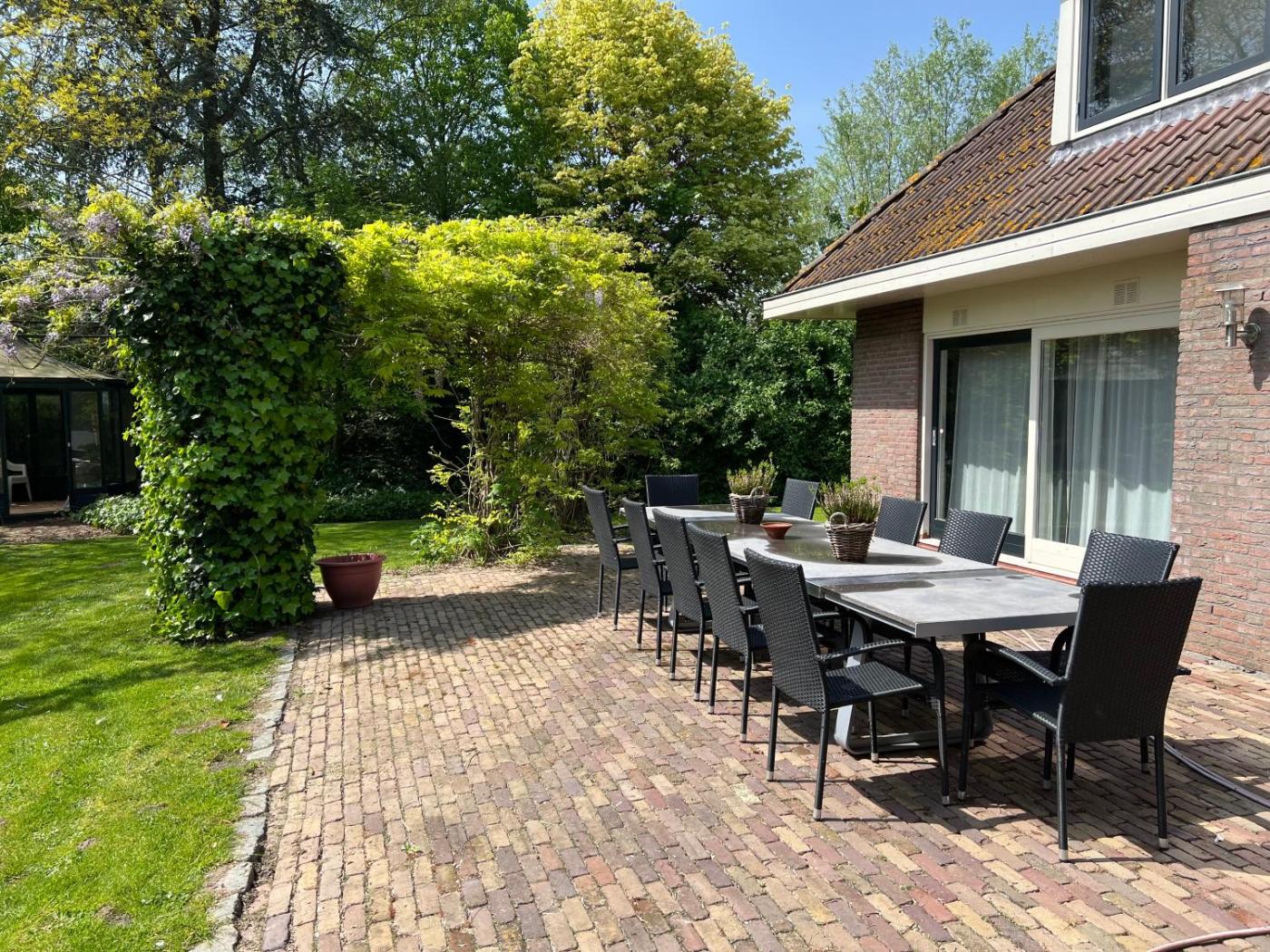 Holiday Home. This completely renovated holiday home has 3 spacious bedrooms, each with its own bathroom with a shower, toilet and sink. The beds are made. The holiday home offers a view on the meadows. There is a living room with a dining table and a couch. Furthermore, there is a fully equipped kitchen with a dishwasher, combi oven, fridge and a stove. A coffee machine and a kettle are in the room. For children, there is a highchair and a crib. The holiday home can accommodate 11 persons.