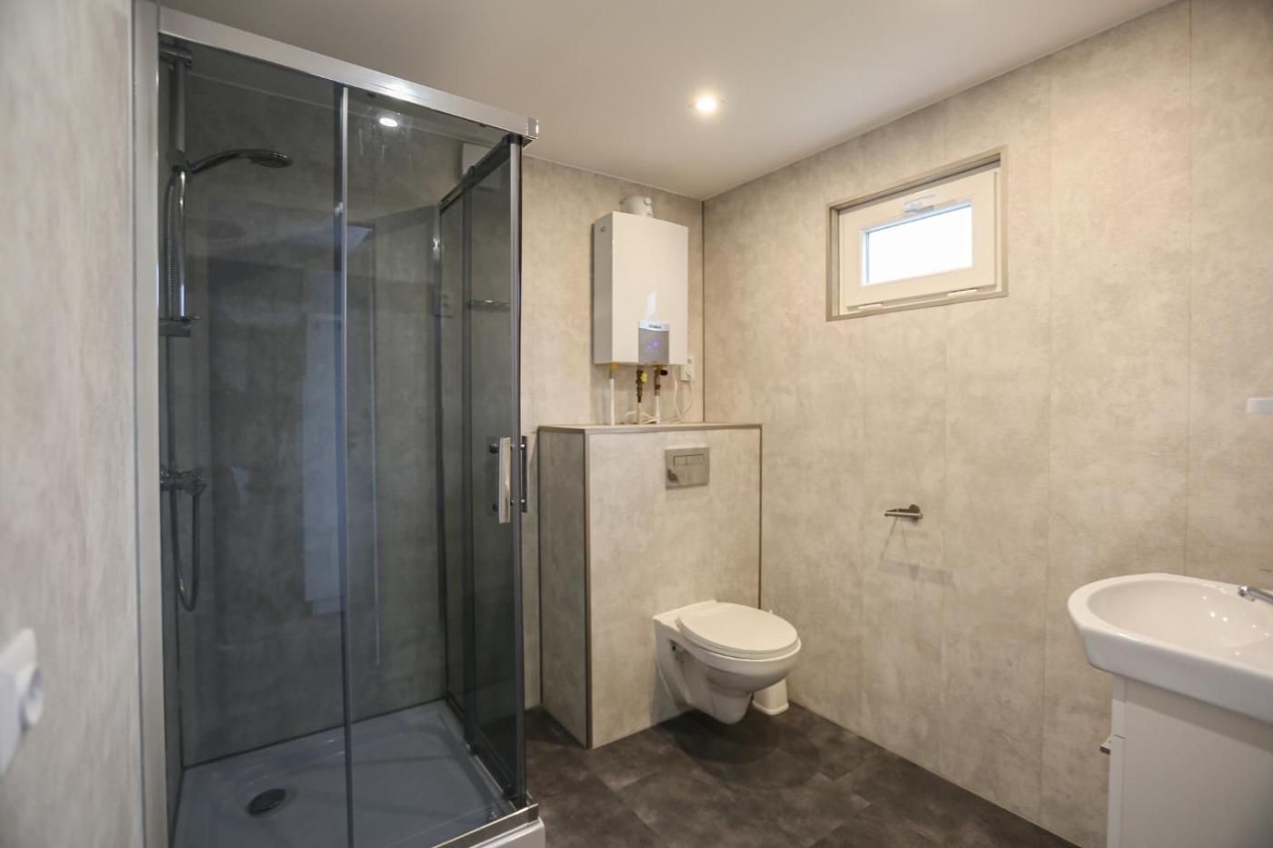 Two-Bedroom Chalet. The chalet offers a dining area, a wardrobe, as well as a private bathroom featuring a shower. The fully equipped kitchen has a refrigerator, kitchenware and a microwave. The chalet features parquet floors, a seating area with a TV, a private entrance, a tea and coffee maker as well as lake views. ;
