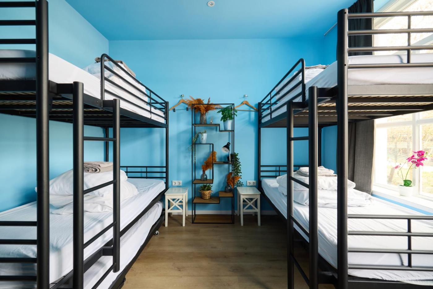 Group Room with Shared Bathroom. This room has a sink in the room and a shared bathroom situated in the hall. This room is furnished for bunk beds and may not be suitable for very young guests or guests with mobility problems.