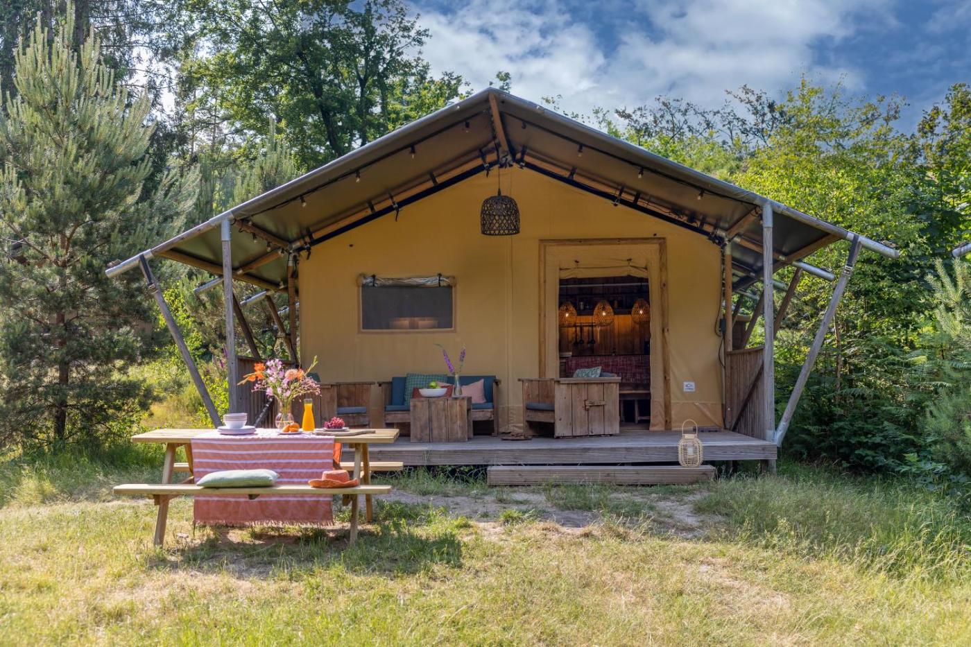Tent. The well-fitted kitchen features a stovetop, a refrigerator and kitchenware. The tent provides a private entrance, a tea and coffee maker, a terrace with garden views as well as a private bathroom featuring a shower. The unit offers 4 beds. ;
