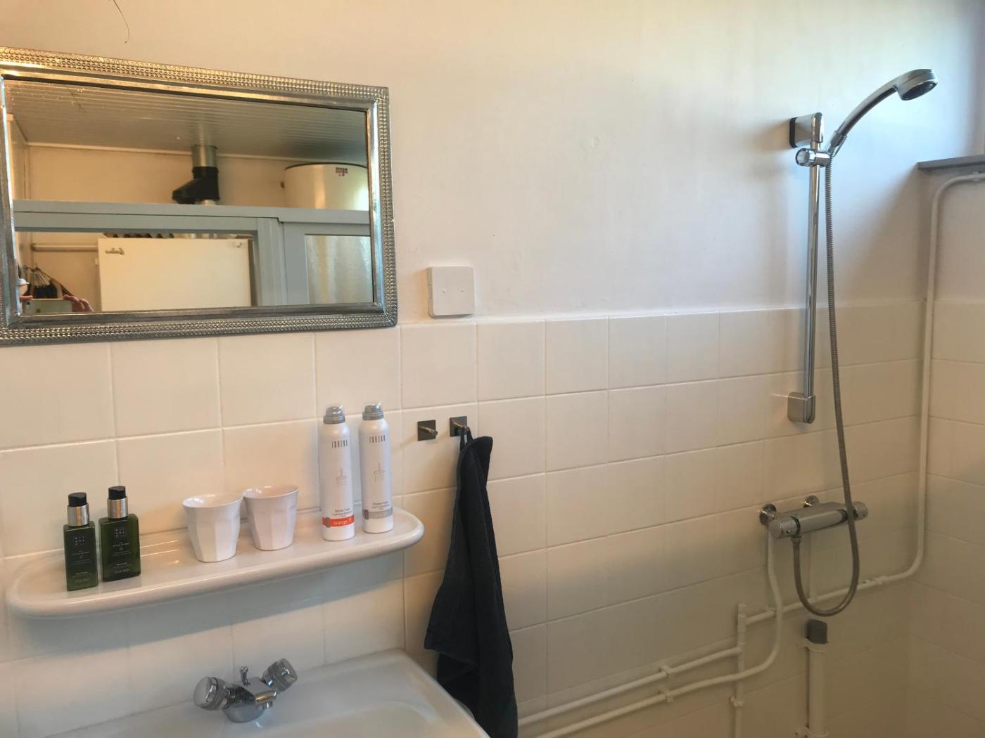 Double Room with Private Bathroom. The double room features a washing machine, a private entrance, a terrace with a quiet street view as well as a private bathroom boasting a shower. The unit has 2 beds.