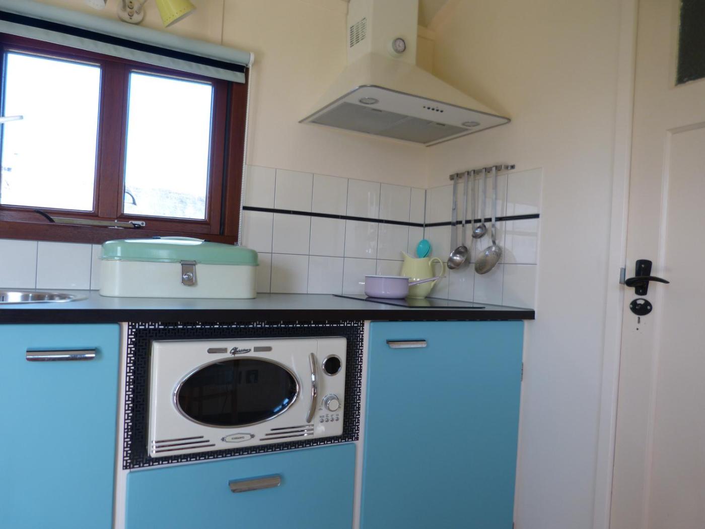 Mobile Home. This 25 square metres mobile home has a kitchenware, stovetop and dining area. It is located in the rural area of Amsterdam. ;