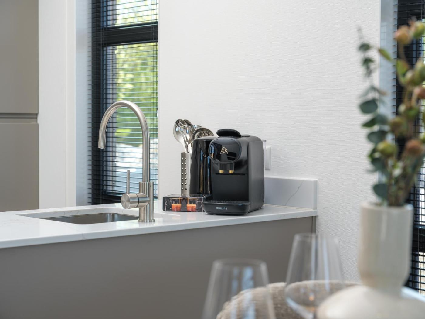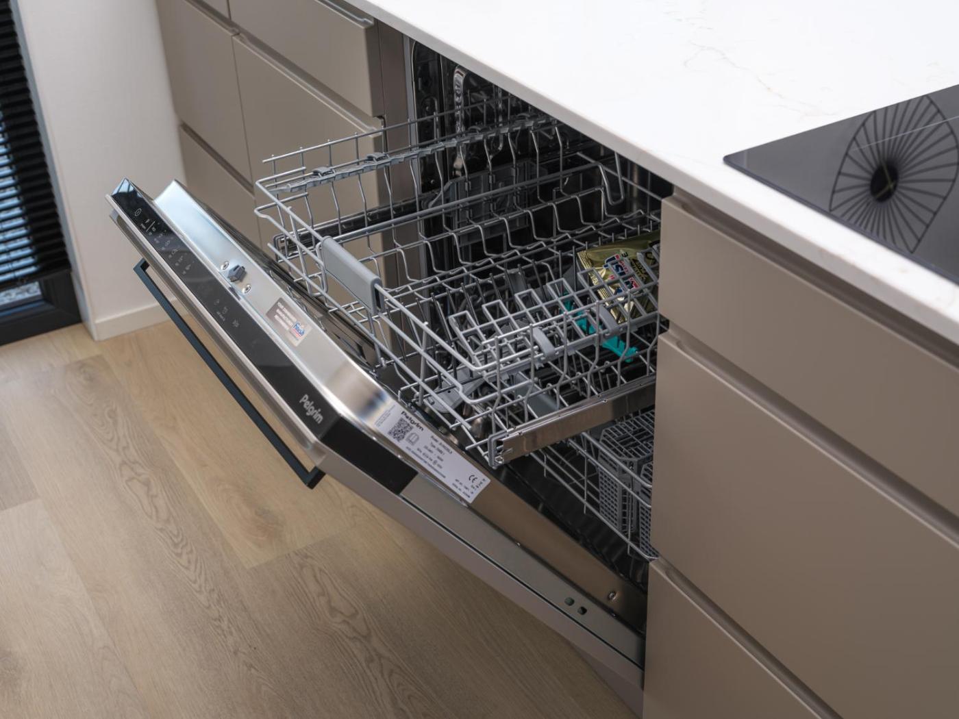 The holiday home consists of 2 bedrooms, a living room, a fully equipped kitchen with a dishwasher and a kettle, and 2 bathrooms with a shower and a hair dryer.