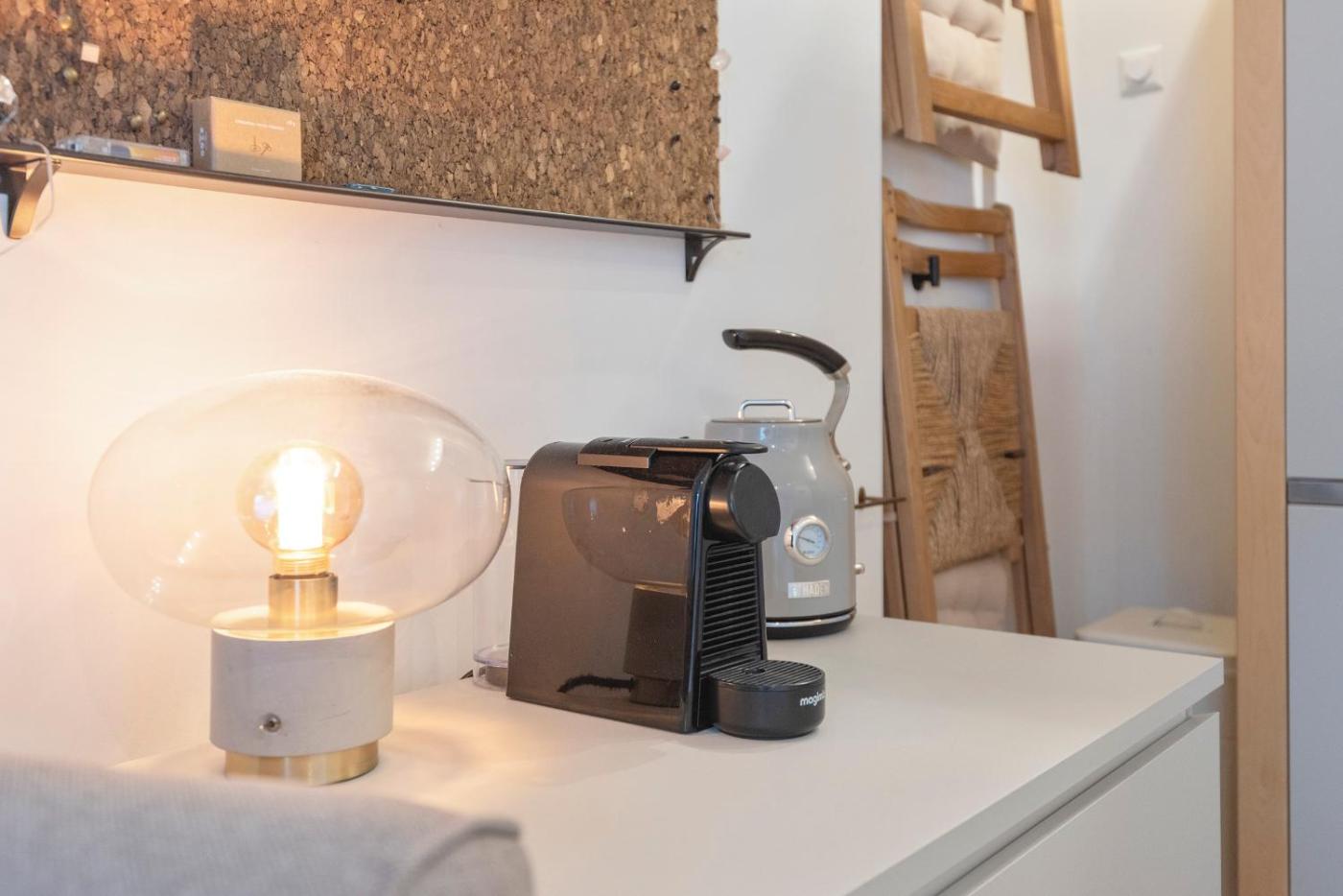 The kitchenette is equipped with a microwave, a fridge and kitchenware, as well as coffee machine and kettle. The accommodation offers an air conditioning, a heating and a private bathroom.