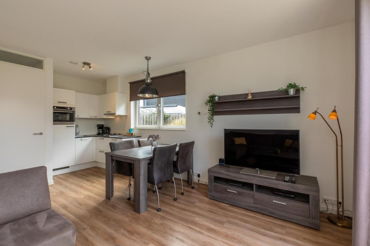 Two-Bedroom House. Featuring a private entrance, this holiday home also consists of 2 bedrooms, a seating area and 1 bathroom with a walk-in shower and a hairdryer. The fully equipped kitchen features a stovetop, a refrigerator, a dishwasher and kitchenware. Boasting a terrace with garden views, this holiday home also provides a washing machine and a flat-screen TV. The unit offers 3 beds.