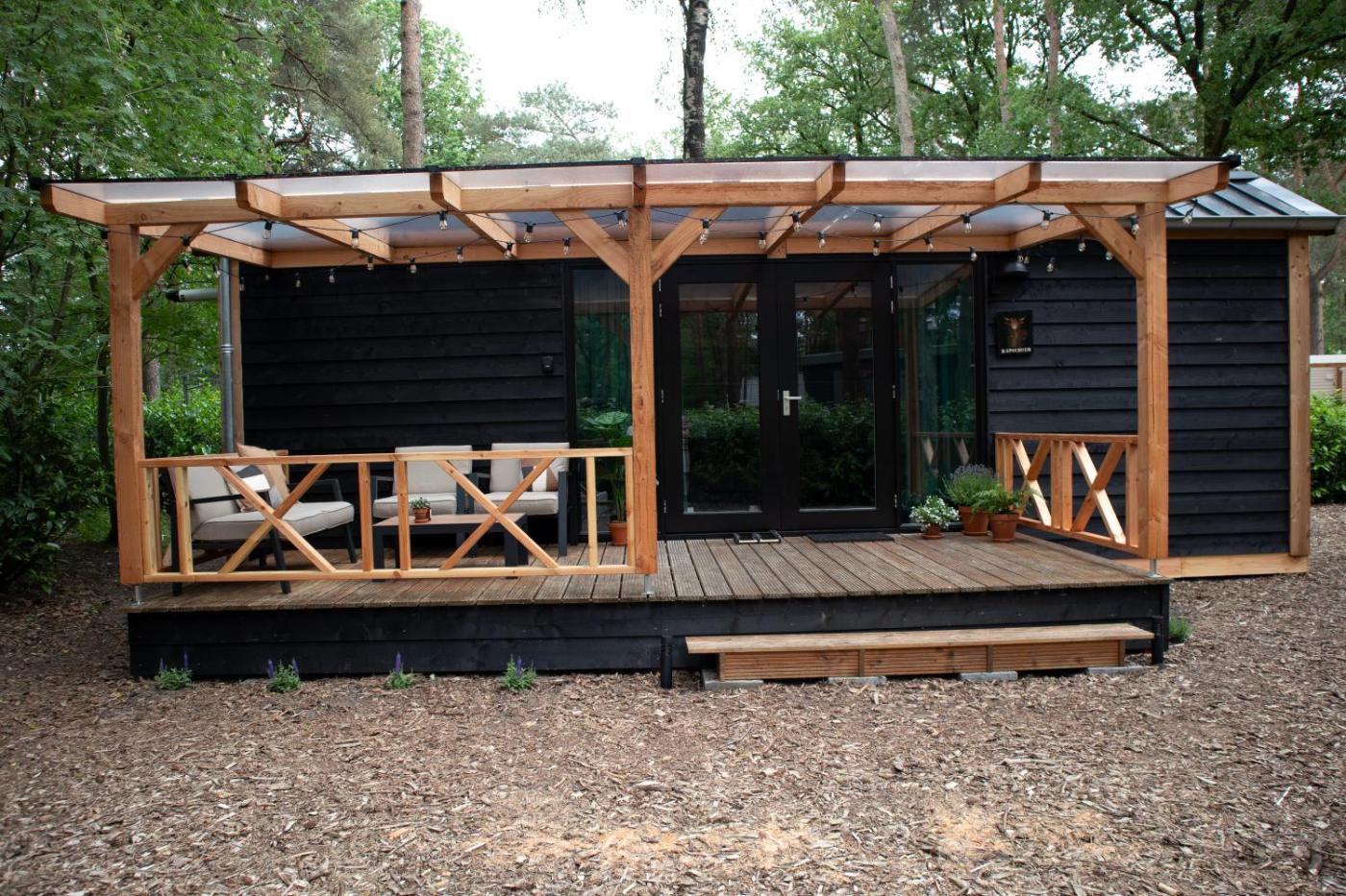The chalet includes 2 bedrooms, 1 bathroom with a shower, a seating area, and a fully equipped kitchen with a fridge. Guests can take in the views of the garden from the terrace, which also has outdoor furniture. For added privacy, the accommodation has a private entrance and soundproofing.
